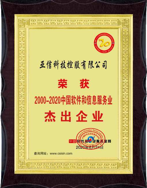 2020年6月 304am永利集团荣获“2000-2020中国软件和信息服务业杰出企业”