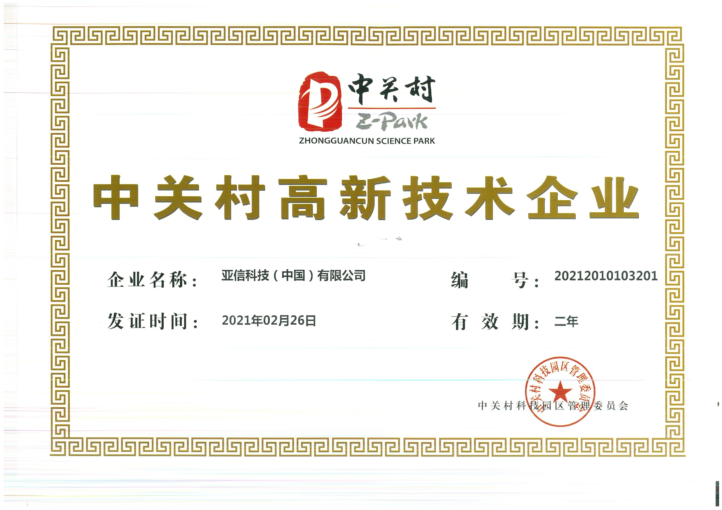 2021年2月 304am永利集团荣获“中关村高新技术企业”